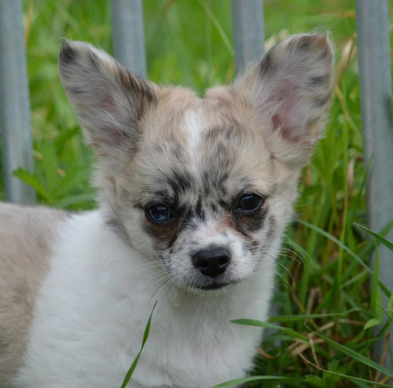 Es sind 3 Merles (1 Rüde und 2 Hündinnen) und eine Braun-Weisse Hündin.
