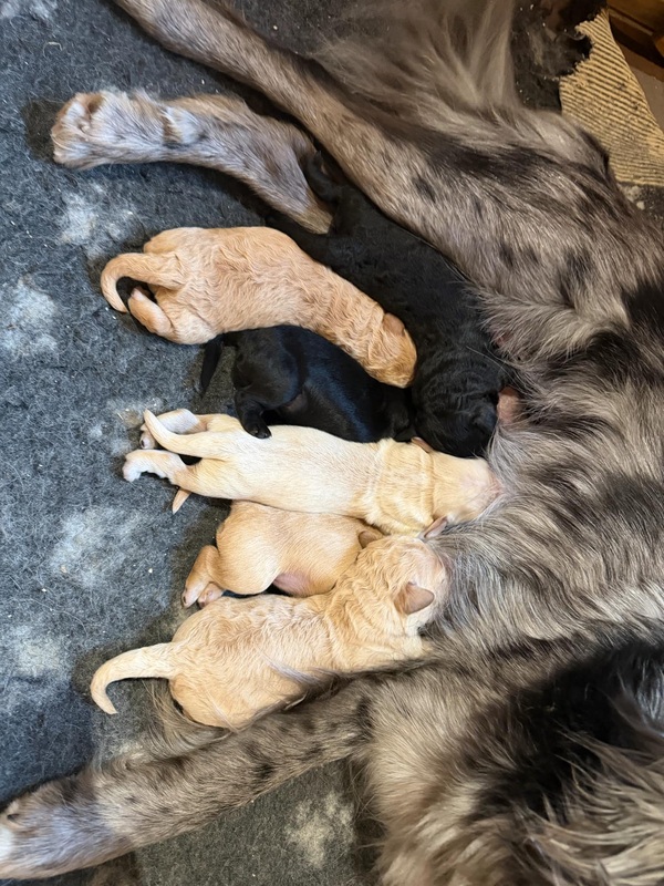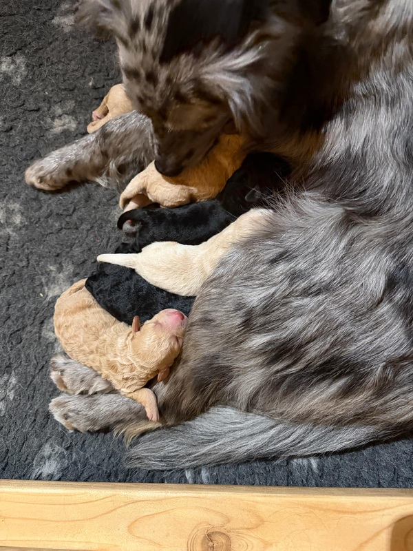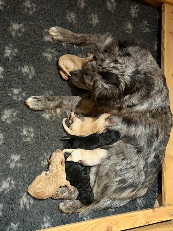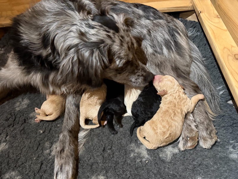 Unsere wunderbare Lia hat am 31.1.26 nach 63 Tagen Tragezeit 6 Welpen bekommen! Der stolze Papa ist Filou.